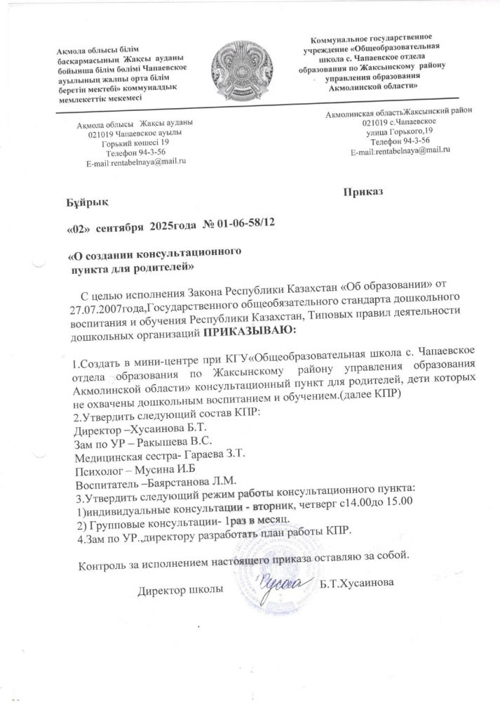 Коммунальное государственное учреждение «Общеобразовательная школа с. Чапаевское отдела образования по Жаксынскому району управления образования Акмолинской области»